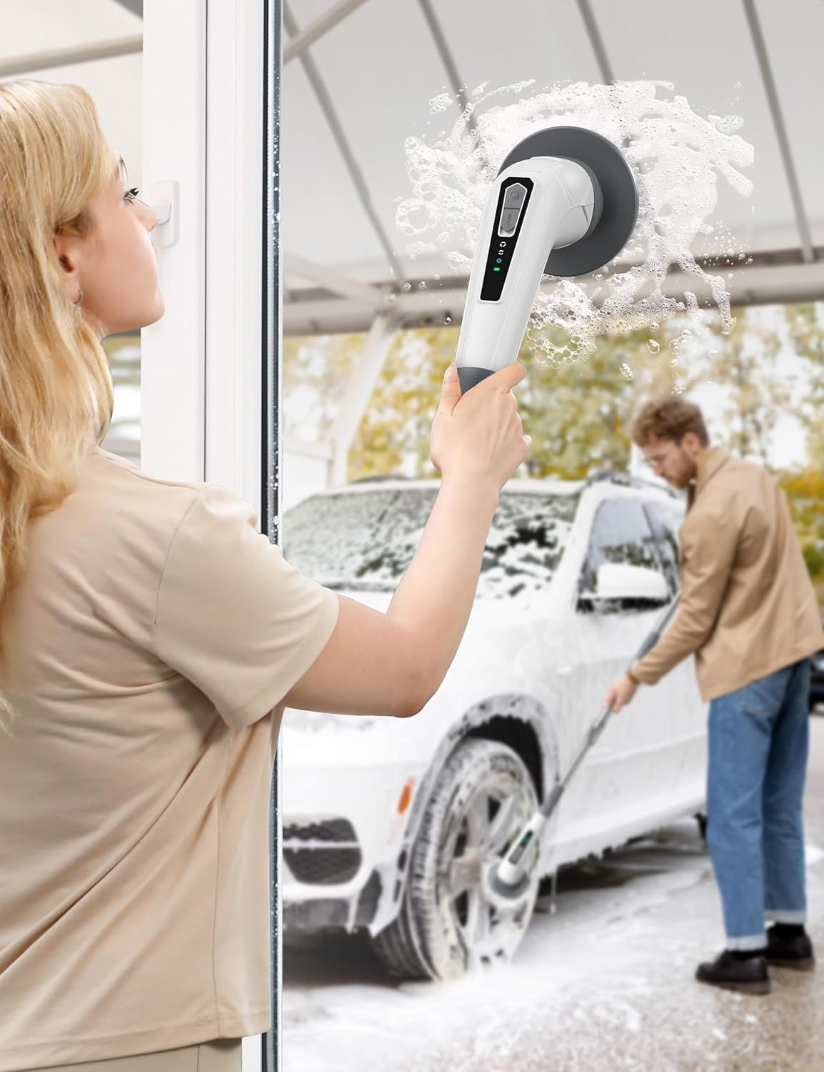 Los 6 cabezales intercambiables son perfectos para cualquier superficie, desde ba?os hasta cocinas sin problemas.
